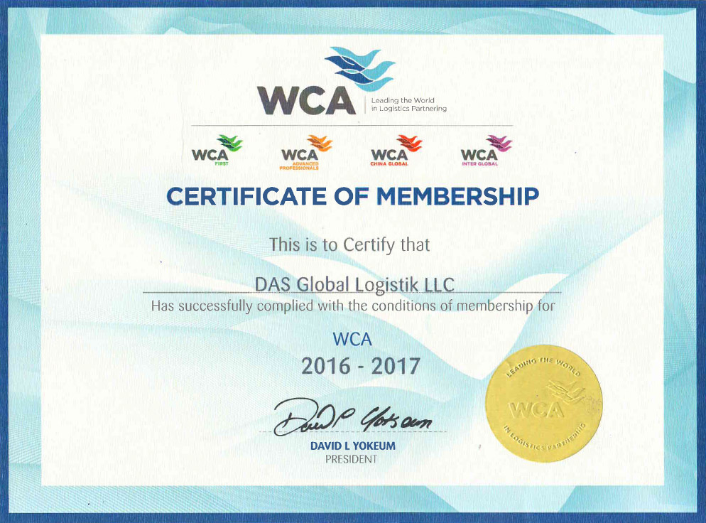 WCA – самая крупная в мире сеть независимых международных транспортных компаний Объединяет более 6245 офисов в 189 странах по всему миру. Членство возможно исключительно при условии высокого уровня стандартов сервиса в рамках международных перевозок.